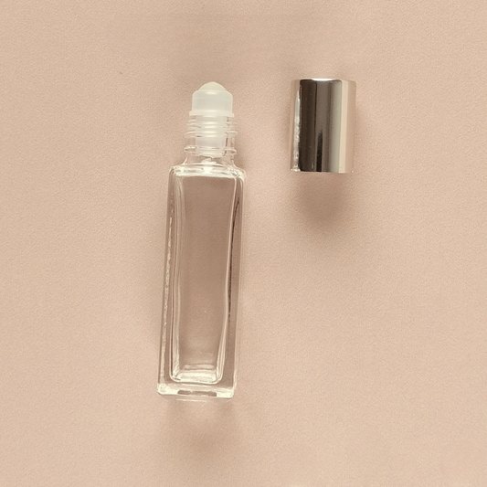 8ml Square Roll-on Bottles - Clear Glass, Refillable Attar Bottles with Shiny Silver Cap, Wholesale for Essential Oils and Perfumes