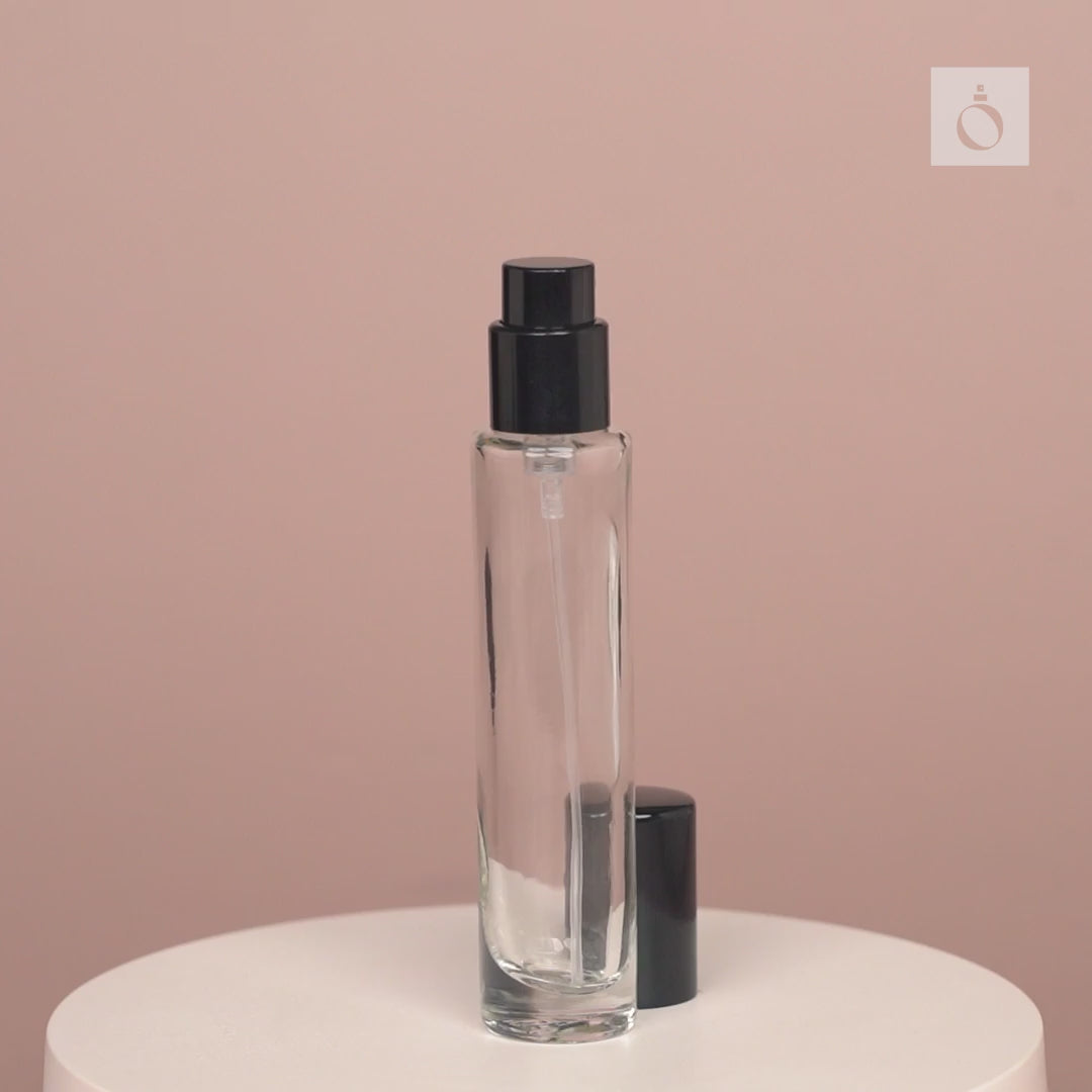 Designed for fragrance brands, private label perfumes, and wholesale perfume packaging, this 15ml Wim Glass Perfume Bottle features a premium transparent glass body paired with an elegant black top, offering a sleek and customizable packaging solution for high-end fragrances.